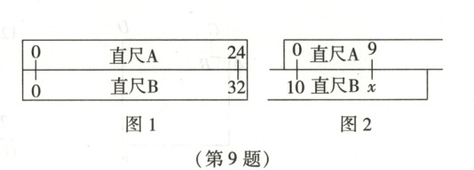 9. 将两把不同刻度的直尺A和直尺B,分别按图1和图2的方式紧贴在一起,根据图中数据,下列正确的是(