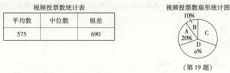 某学校征集河北美影视视频,视频获奖等级按照学生投票数依次分为一等奖、二等奖、三等奖和参与奖。将$A$,$B$,$C$,$D$四个视频的投票数绘制成如下不完整的统计表和扇形统计图,已知投票数的极差和视频$C$的投票数一样。