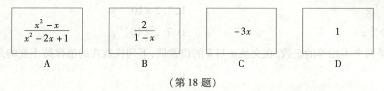 有$A$,$B$,$C$,$D$四张卡片,正面分别写有$\frac{x^2 - x}{x^2 - 2x + 1}$,$\frac{2}{1 - x}$,$-3x$,$1$,四张卡片除正面的代数式不同外,其余均相同(如图).