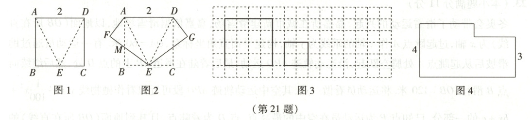 (2)请你在图3的较大正方形中画出三条裁剪线,并在右侧空白网格处画出所拼成的大正方形和拼接线;