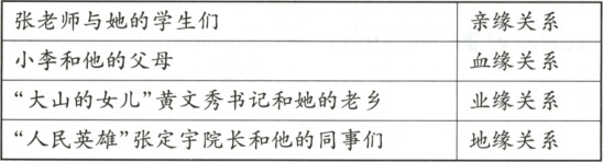 4. 社会关系从建立的基础可分为血缘关系、地缘关系和业缘关系。下列关于社会关系分类对应正确的有 (