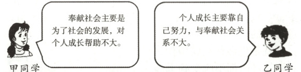 乙同学:个人成长主要靠自己努力,与奉献社会关系不大。