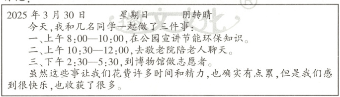 某校的学生小华有每天写日记的习惯,下面是他近期的两则日记: