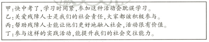 3. 学校组织九年级学生参加“关爱社区残障人士”的社会实践活动,几位同学对此发表看法: