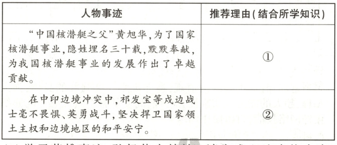 (2) 学习英雄事迹,弘扬伟大精神。请完成上述表格内容。(4分)