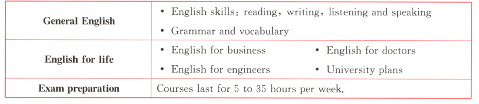2.D 推理判断题。由广告中Prices里提及的“Exam preparation classes:£10 per hour”可知,参加考试准备课程,每小时10英镑,因此5小时需要50英镑。
