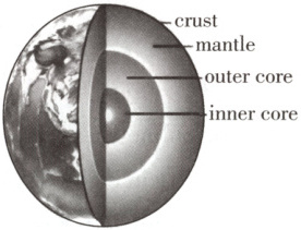 The mantle(地幔) around the core is made of very hot rock. The lower part of the mantle is soft and can move very slowly. The mantle makes up most of the Earth.