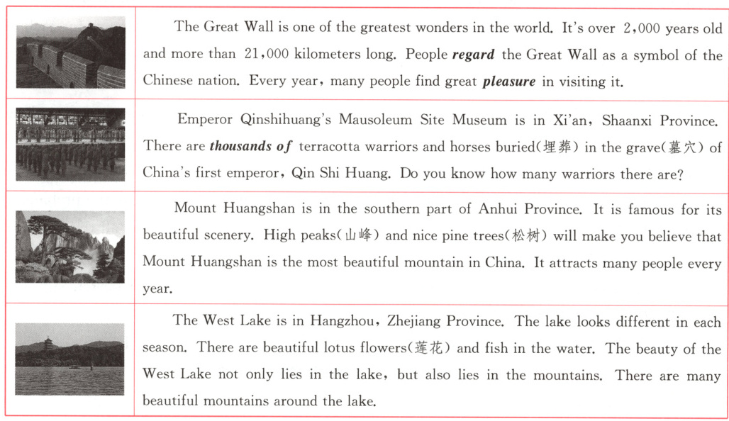 )2. Which is TRUE about terracotta warriors and horses according to the material?A. They're in Anhui Province.