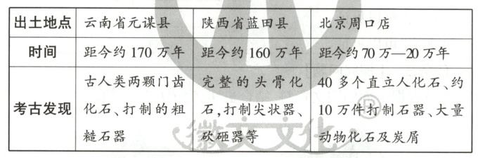 2. 【史料实证】考古研究证明我国已有百万年的人类史。从下表所列我国境内远古人类考古发掘的部分史实中可得出他们都(