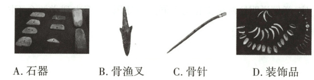 3.D 【解析】根据材料“人类从未停止过追寻美的步伐,无数的人从美的各个方面赋予美不同的定义”并结合所学知识可知,第四幅图是装饰品,能够体现生活中人类对美的追求,D正确;第一幅图是石器,注重的是实用性,排除A;第二幅图是骨渔叉,属于实用性工具,排除B;第三幅图是骨针,属于缝补东西的实用性工具,排除C。