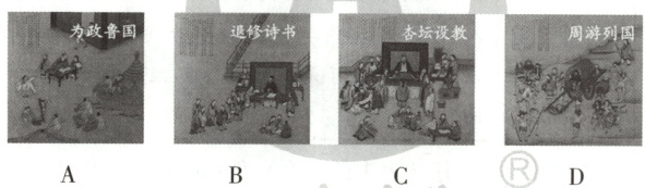 8. 某博物馆举办“高山景行——孔子文化展”,用九幅图勾勒出孔子的一生。下面是其中的四幅图,其中最能体现孔子教师身份的是 (