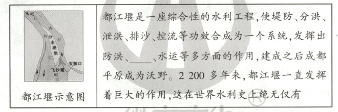 (3) 综合上述材料并结合所学知识,用一句话概括水利工程与社会发展之间的关系。(4分)