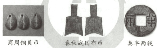 2.A 【解析】根据材料并结合所学知识可知,贝币源于商品交换,布币产生后不断向轻巧型发展,适应了商品经济发展的需要,秦半两钱便于携带,更有利于商品经济的发展,A正确;春秋战国时期国家没有统一,B不符合题意,排除;货币形制不断变化与审美观念的变化关系不大,排除C;货币形制不断变化不能体现出科学技术的进步,排除D。