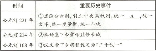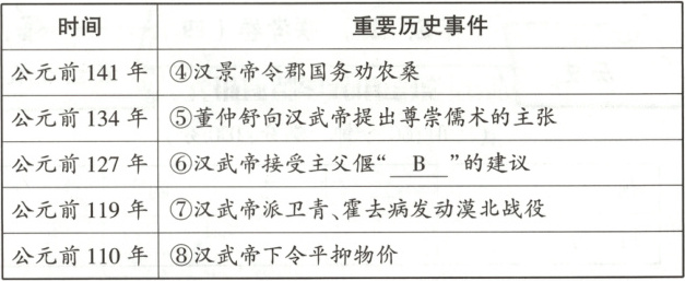 (1)A:货币;B:推恩。作用:统一货币改变了以往币制混乱的状况,有利于国家对经济的管理,促进各地经济的交流;削弱了封国的势力,加强中央对地方的控制。