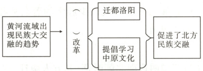 (3)人物:北魏孝文帝。关系:互为因果关系,北魏孝文帝顺应民族交融的趋势进行改革,改革又促进了民族交融。