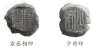 5. 封泥是中国古代用于密封文书并加盖印章的泥块,下图是两枚秦代出土的刻有“右丞相印”“少府(九卿之一)印”字样的封泥。这类封泥有助于研究秦朝 (