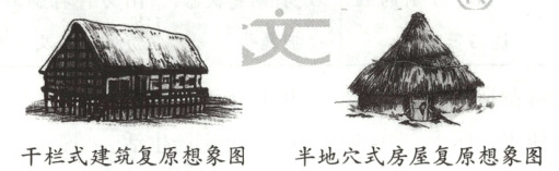 (3)不同点:在房屋建筑方面,河姆渡人住干栏式房屋,半坡人住半地穴式房屋;在农作物种植方面,河姆渡人主要种植水稻,半坡人主要种植粟、黍。原因:长江流域和黄河流域自然环境的不同。