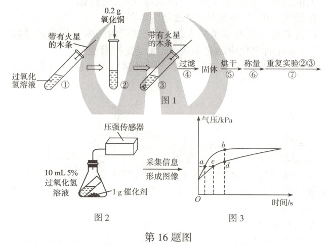16. (6分)[img]核心素养·科学探究与实践催化剂对化学工业及社会的发展起到举足轻重的作用。某小组开展了“探究催化剂的奥秘”项目式学习。