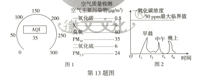 实验小组用微型空气质量“检测站”测得某小区地下车库中一氧化碳浓度如图2所示。