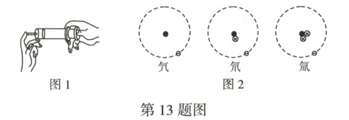(3)氕(piē)、氘(dāo)、氚(chuān)是氢元素的三种同位素原子,它们的原子结构模型如图2所示,原子结构模型中的“●”表示的粒子是