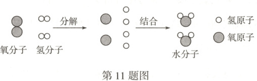 11. 核心素养·化学观念 如图所示的是氢气在氧气中燃烧生成水的微观过程示意图,下列说法中正确的是(