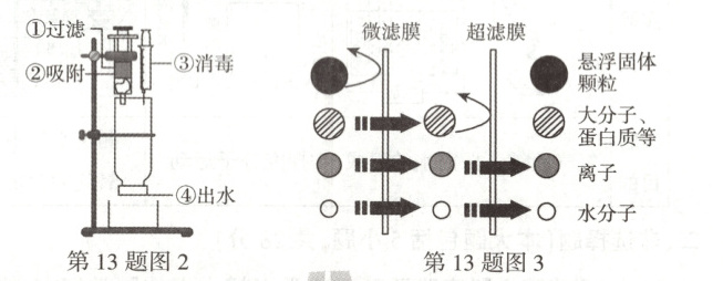 (3)当观察到图2中左侧针孔有清澈的液体滴出时,________________________(填具体操作),可加速过滤。过滤采用了图3膜技术净化装置,自来水经过该装置过滤后其硬度(通常用可溶性钙、镁离子的含量来判断)________(选填“会”或“不会”)降低。
