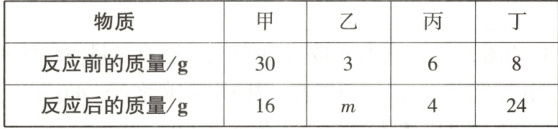 A.乙既不是反应物,也不是生成物,反应前后质量不变,故m的数值是3,故A正确,不符合题意;