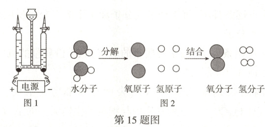 在电解水实验中,两个电极上都会产生气泡。如图1所示,正、负极产生气体的体积比约为________,经检验正极产生的气体是氧气,负极产生的气体是氢气。此实验可证明水是由氢元素和氧元素组成的,得出此结论的依据是________。