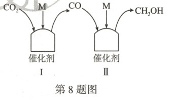 8. 我国科研人员研制出一种新型催化剂,能将CO₂转化成甲醇(CH₃OH),其转化过程如图所示(M为单