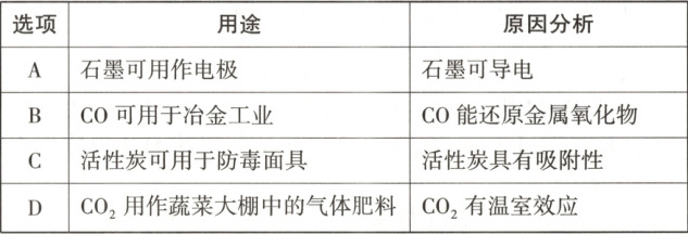 6. 关于碳及其氧化物的用途及原因分析,下列说法中不正确的是(