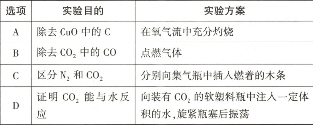 A.在氧气流中充分灼烧,碳与氧气反应生成二氧化碳,能除去CuO中的C,且不会引入新杂质,符合除杂原则,故A实验方案能达到实验目的,符合题意;