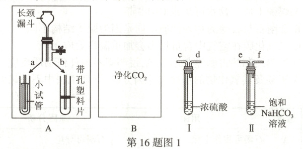 (2) 为得到纯净干燥的CO₂,B中需连接Ⅰ、Ⅱ装置,Ⅰ、Ⅱ装置的导管口沿气体流动方向的连接顺序是