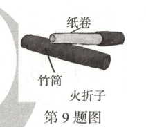 9. 新考法一吹就燃、一甩就燃的古代“打火机”——火折子(如图所示),是用草纸卷成密集的纸卷,用火点燃,再将其火焰吹灭放入竹筒中,需要的时候取出,快速甩动或用嘴吹一下即可生火。关于火折子,下列说法中正确的是(