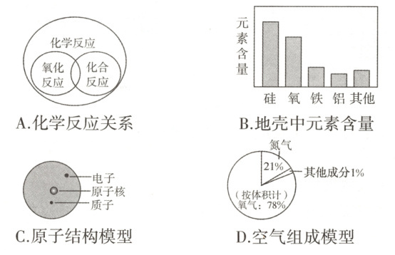 B.地壳中元素含量由高到低前四位依次是氧、硅、铝、铁,该模型中元素含量排序错误,故B错误;
