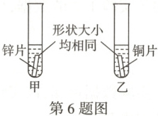 B.若向甲、乙试管中加入稀盐酸,则只有锌片表面能产生气泡