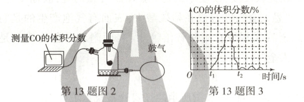 (4)小组同学通过图 2 所示的装置模拟垃圾焚化,测得产生的气体中 CO 的体积分数的变化如图 3 所示,t₁~t₂时间段内 CO 的体积分数出现异常可能的原因是