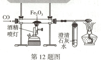 12.B 【解析】本题主要考查一氧化碳还原氧化铁实验,一氧化碳的可燃性,二氧化碳的检验。