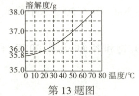 12.B 【解析】本题主要考查溶液的特征,溶解度及计算。