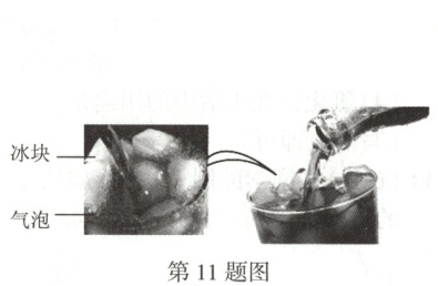 11. (2024·成都)将某碳酸饮料的瓶盖拧开,倒入装有冰块的杯中,如图所示。下列分析中合理的是 (