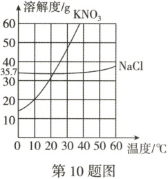 10. 如图所示的是 KNO₃、NaCl 两种固体物质的溶解度曲线,下列说法中正确的是 (