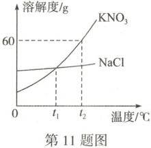 11. (2024·新疆)KNO₃和NaCl的溶解度曲线如图所示,下列说法中正确的是(