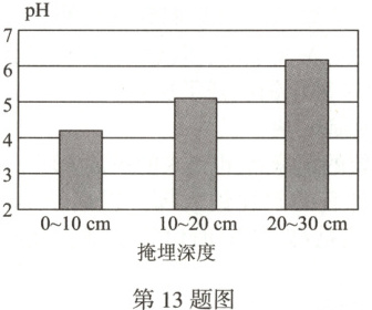 13.(2024·安徽,5分)茶叶是我省重要的经济作物之一,茶园土壤的酸碱性会对茶叶的品质产生重要影响。某兴趣小组测定了某地茶园土壤的酸碱性并提出改良方案。
