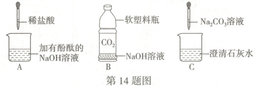 14.(6分)初中化学课上,同学们利用下列实验探究碱的化学性质。