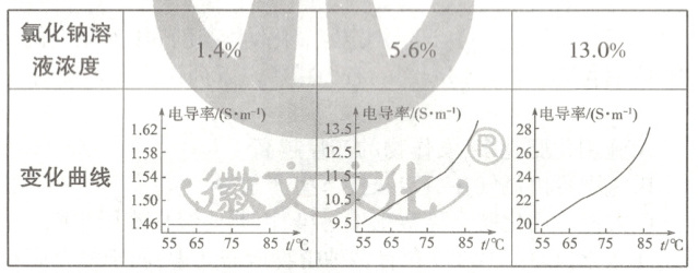 小组同学用电导率传感器测定不同温度、不同浓度氯化钠溶液的电导率。