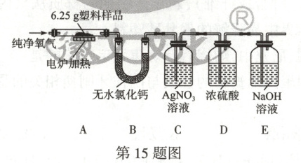 15. (6分)已知某种塑料的组成元素中有碳、氢两种元素,还可能有氧、氯元素中的一种或两种。为了测定其组成,某化学兴趣小组进行如下探究。