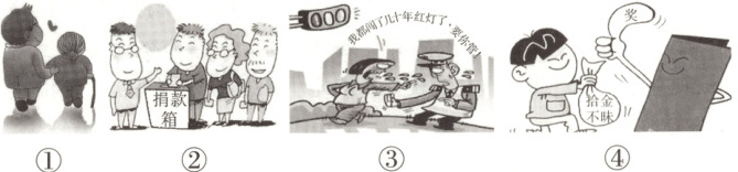 5.【道德修养】美德的力量在于践行。下面漫画中最能体现传承中华传统美德的一组是 (