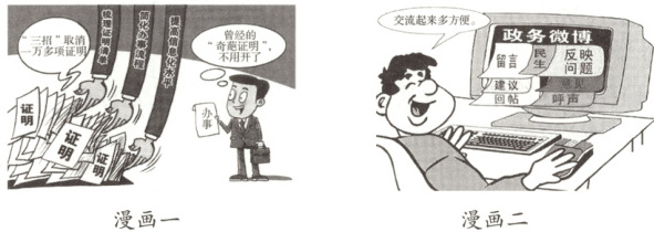 (1)上述两幅漫画共同表明我国政府的宗旨是