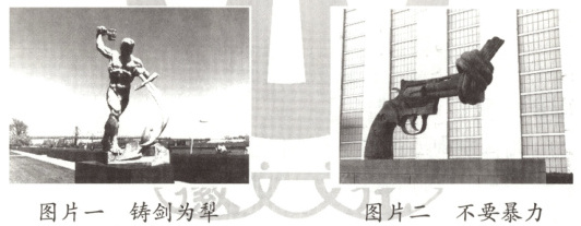 (1)《铸剑为犁》《不要暴力》是耸立在纽约联合国总部前面的两尊雕像。它们共同表达了什么?(4分)
