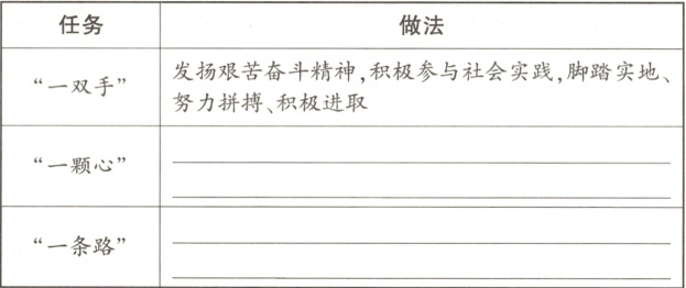 (3)“一颗心”:热爱党、拥护党,坚定不移跟着中国共产党;热爱祖国,坚持国家利益至上。“一条路”:坚定道路自信,坚持中国特色社会主义道路,做自信的中国人。(4分)