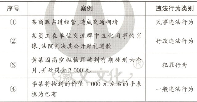 2. 【新考法·行为判断】违法行为是指违反法律、法规的规定,危害社会的行为。下列案例与违法行为类别对应正确的有(